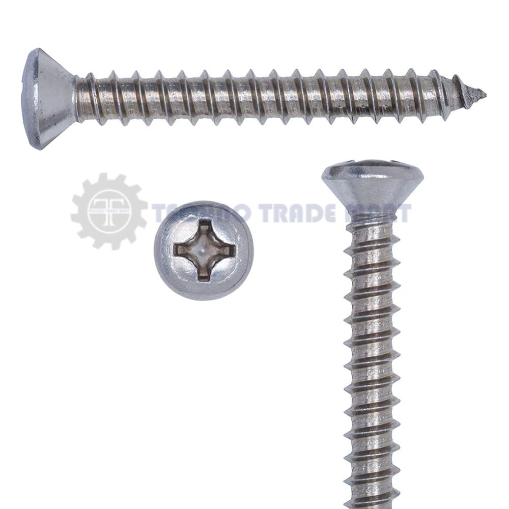 - Head Shape: Oval (slightly domed with a countersunk underside)